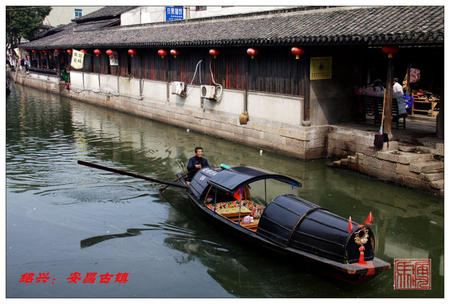 一條清澈的小河緩緩流淌,將古鎮(zhèn)一分為二,似乎經(jīng)緯分明。一邊是屋檐廊亭,店鋪?zhàn)鞣唬婚g挨一間,緊湊有序,廊檐上掛滿了各色錦旗招牌,尤以“扯白糖”最為光鮮。廊亭下擺放八仙桌,以及土特產(chǎn)品。游客熙來(lái)攘往,餓了,累了,可以在此點(diǎn)上幾個(gè)小菜,來(lái)杯紹興老酒,聊聊古鎮(zhèn)的風(fēng)情逸事。這不失為深入了解古鎮(zhèn)風(fēng)情的一種最直接有效的方式。一邊是民宅古拙,石板小弄,曲徑通幽,漸顯清閑靜寂,與對(duì)岸熱鬧街市有很大的區(qū)別。不過(guò),在這清靜的弄堂里,有古鎮(zhèn)歷史文化、民俗風(fēng)情的各種展館。如安昌民俗風(fēng)情館、紹興師爺紀(jì)念館等。但這是需要買票才能參觀的啊。整個(gè)古鎮(zhèn)只是逛逛老街,是不需要買票的,但參觀展館是要另買票的。
